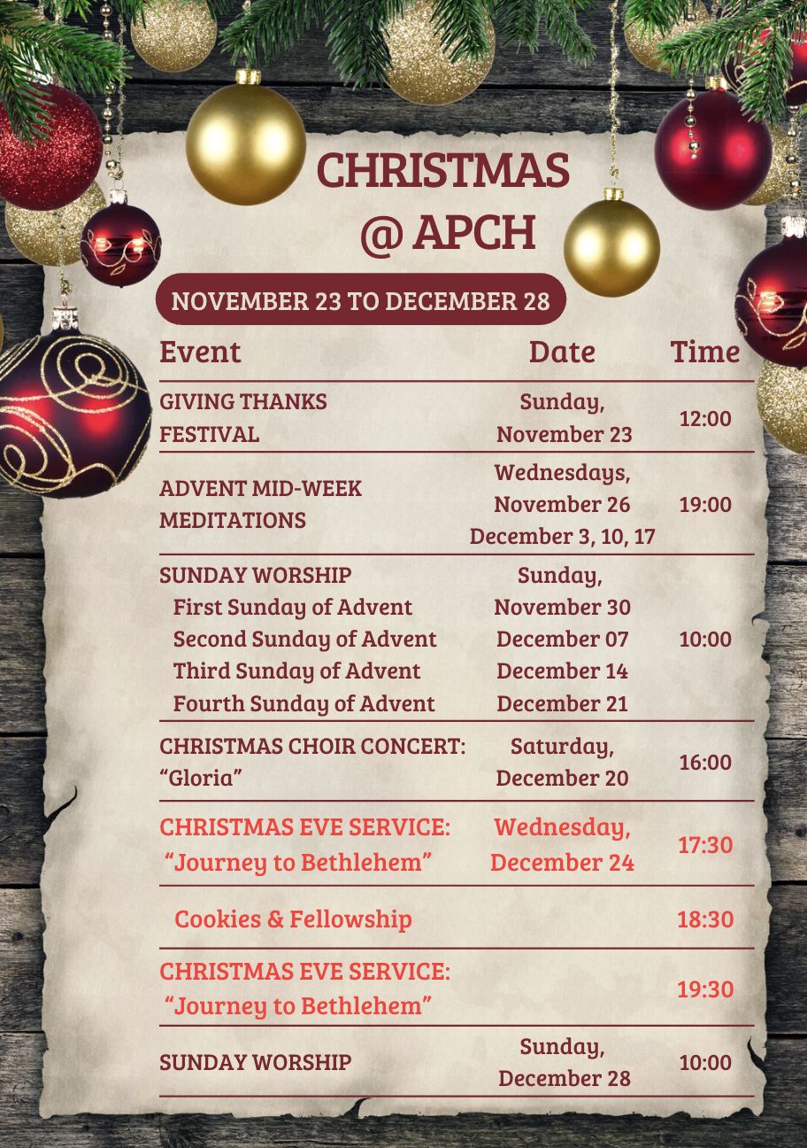 You are welcome to join us in our worship service and connect with us. If you are looking for a new spiritual home, APCH is the place to be.