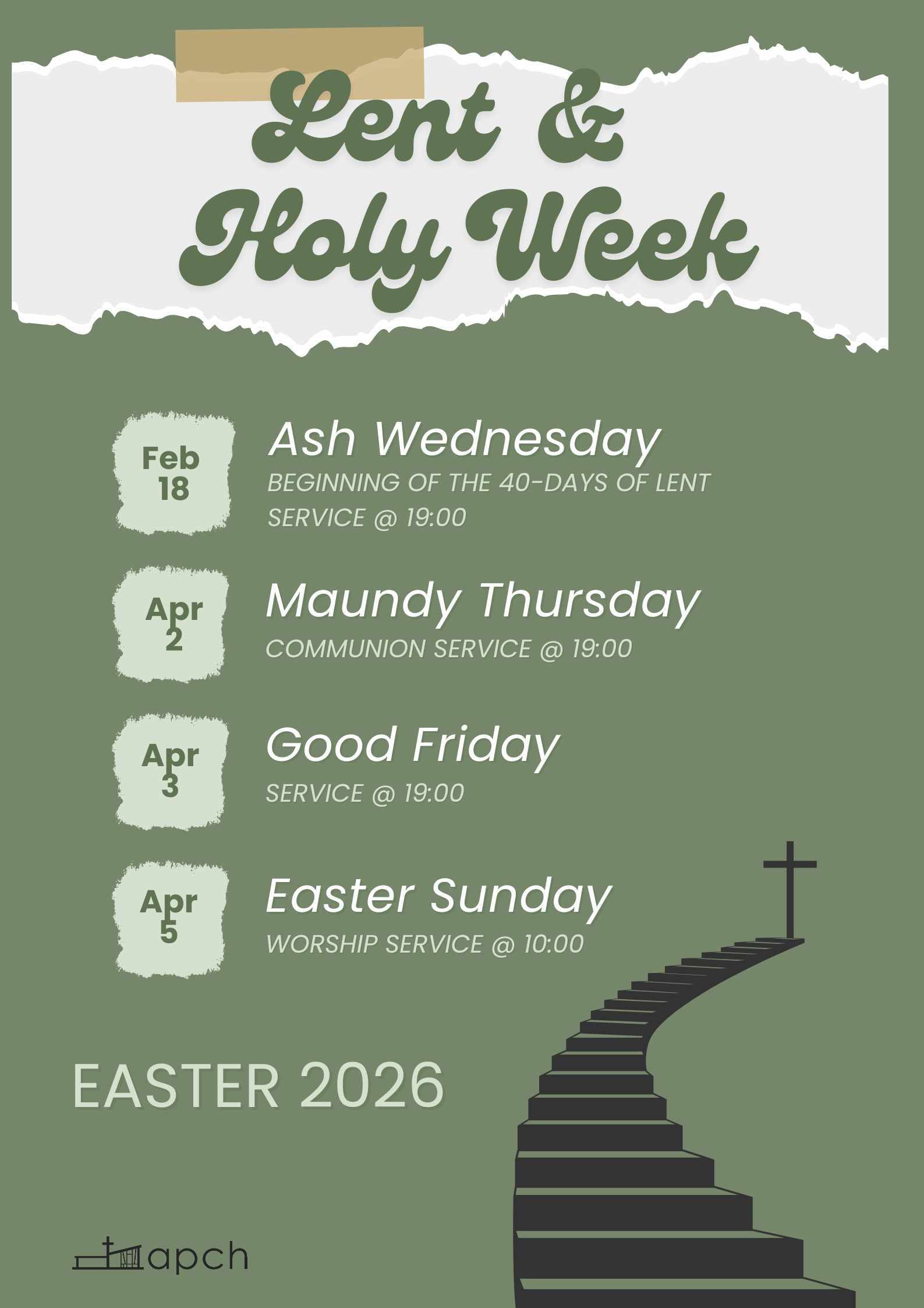You are welcome to join us in our worship service and connect with us. If you are looking for a new spiritual home, APCH is the place to be.