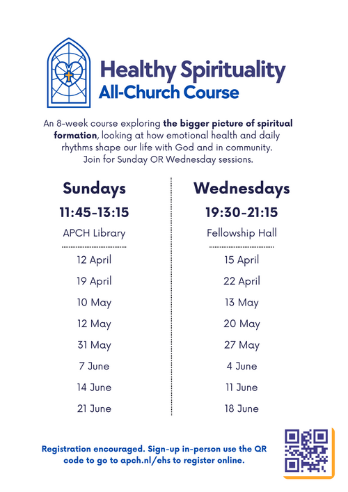 We're excited to offer Emotionally Healthy Spirituality (EHS) — a transformative 8-week course that combines emotional health and contemplative spirituality to help you experience a deeper, more authentic life with God and others. EHS invites you to slow down, go deeper, and do the kind of inner work that leads to lasting spiritual growth..